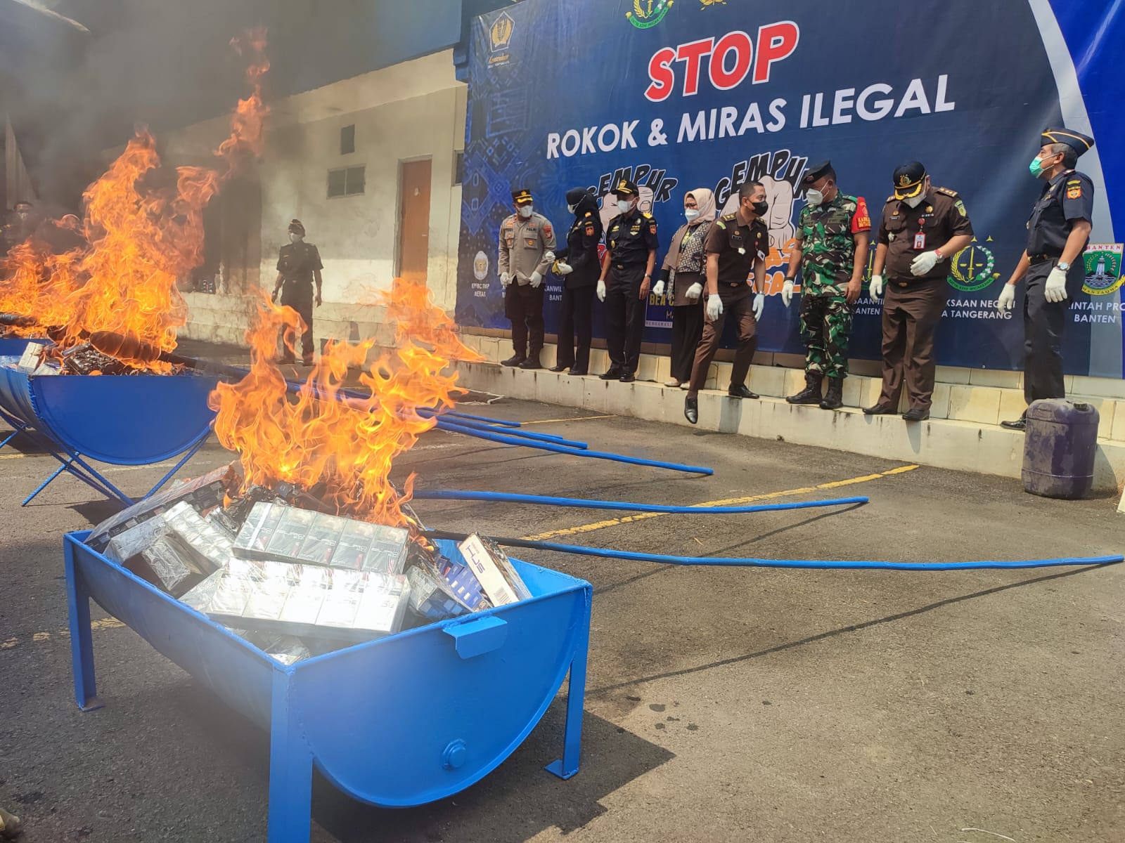 Kepala Kantor Wilayah Bea Cukai Banten, Rahmat Subagio mengatakan adapun Barang Milik Negara (BMN) yang telah mendapatkan persetujuan untuk dimusnahkan dari Direktorat Jenderal Kekayaan Negara (DJKN), diantaranya, Roko sigaret 9,574.560 Batang di bakar, Cerutu 429 Batang di bakar, Hasil Pengolahan Tembakau Lainnya 8,39 liter digilas.