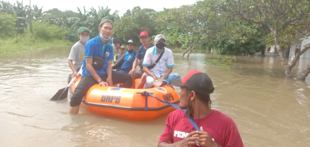 Siberkota.com, Kabupaten Tangerang – DPK KNPI Kecamatan Sepatan, Kabupaten Tangerang bantu evakuasi warga dan salurkan bantuan bersama Forkopimcam Sepatan ke warga korban banjir di Perumahan Prima, Desa Karet, Kecamatan Sepatan, Minggu (21/2/2021).